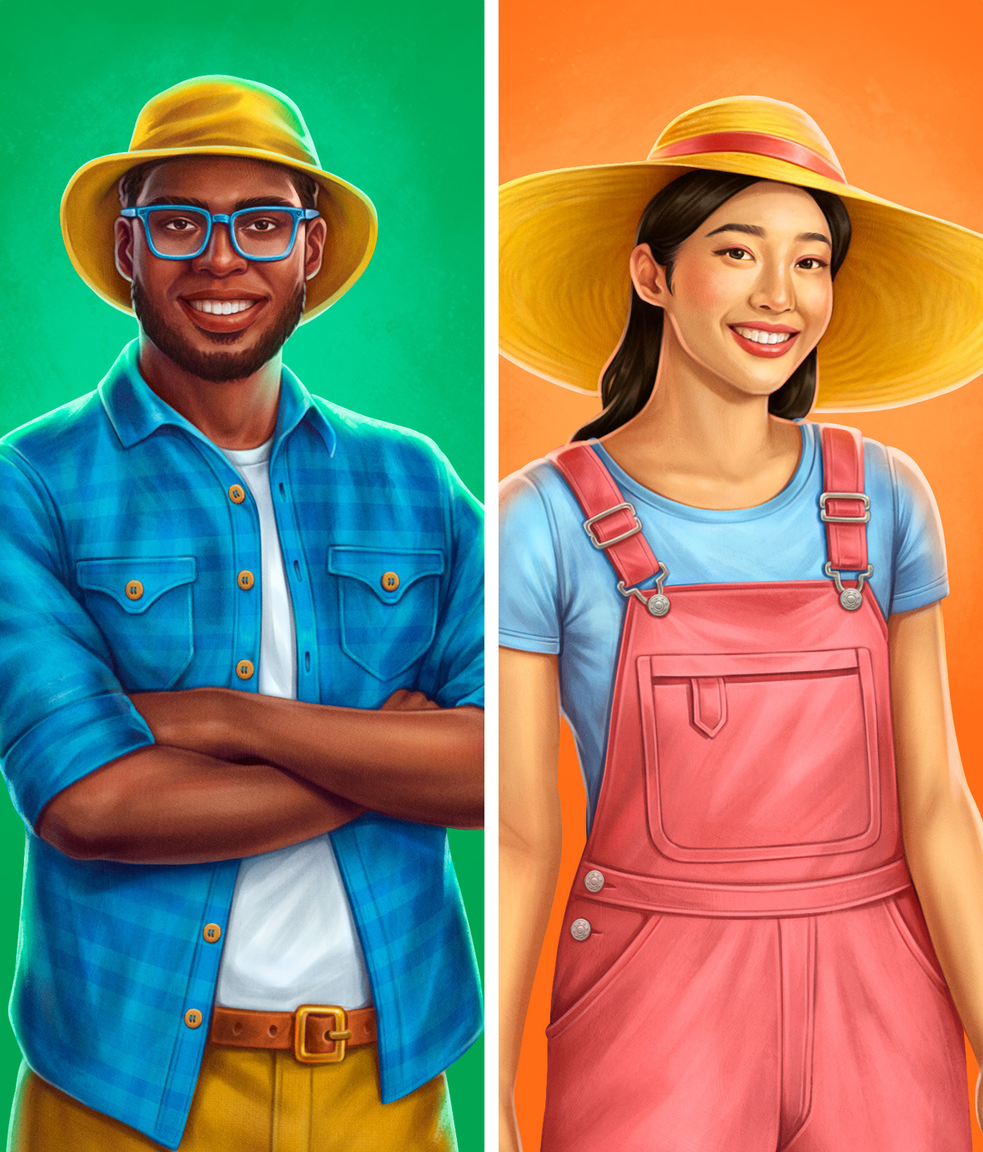 We reimagined Market Fresh with a refreshed illustration style that elevates the gameplay experience while staying approachable and cozy. Our team developed a painterly cover illustration to set the tone, designed and illustrated the four farmer characters, and created custom game boards conceived as individual market stalls. The cohesive visual system supports clarity, strategy, and playful competition—helping the game stand out on shelf and at the table.